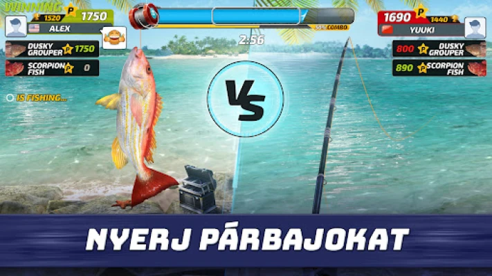 Készülj fel egy felejthetetlen horgászexpedícióra, ahol a természet szépsége és az adrenalindús versenyzés találkozik! A Fishing Clash a mobiltelefonodra hozza a sporthorgászat izgalmát, egyedülálló élményt nyújtva a vízi világ szerelmeseinek. Merülj el a világ leghíresebb horgászparadicsomaiban, fedezd fel az Amazonas vagy a Nílus titkait, esetleg próbáld ki magad a Biwa-tó egyedi élővilágában. Vedd fel a kesztyűt barátaiddal, vagy szállj szembe más játékosokkal izgalmas "játékos-játékos" párbajokban és nagyszabású horgászversenyeken!