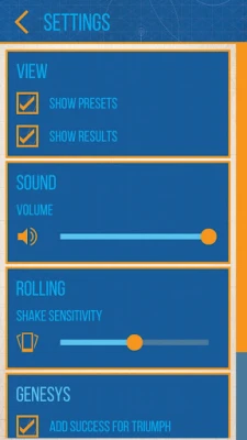 A játék atmoszférájának megteremtése sosem volt még ilyen egyszerű. Válogass tizenöt egyedi, gondosan megtervezett háttér közül, hogy minden dobás vizuálisan is illeszkedjen a kaland hangulatához. A Genesys Dice emellett átfogó beállítási lehetőségekkel is rendelkezik, amelyek segítségével finomhangolhatod az alkalmazás működését. Szabályozhatod a dobási eredmények és az előbeállítások láthatóságát, testre szabhatod a hangvezérlést, és beállíthatod a rázkódásérzékenységet is, így az alkalmazás tökéletesen illeszkedik a te játékstílusodhoz és preferenciáidhoz. Ez a kifinomult testreszabhatóság garantálja, hogy a Genesys Dice zökkenőmentesen integrálódjon bármely asztali szerepjáték ülésbe, emelve annak színvonalát.