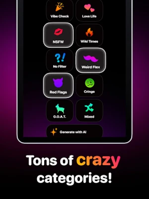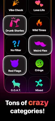 Készüljön fel végtelen nevetésre és meglepő felfedezésekre a több mint 2000 egyedi kérdést tartalmazó, tíz különálló csomagra bontott hatalmas gyűjteményünkkel. Kezdje a játékot az ingyenes „Pre-Party" válogatással, vagy ugorjon fejest az izgalmas „Wild Times" csomagba az azonnali hangulatfokozásért. Azok számára, akik mélyebb kapcsolatokat és esetleg pajkosabb témákat mernek felfedezni, speciális kártyapaklik is rendelkezésre állnak – a provokatív „piszkos" témáktól kezdve az olyan, pároknak szánt, bepillantást nyújtó kapcsolati kérdésekig. Minden csomag új nézőpontot kínál barátainak és partnereinek megismerésére, garantálva, hogy két játék este sem lesz egyforma.