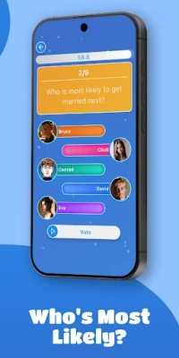 A játékmenet egyszerű, mégis lebilincselő: válasszatok a változatos kategóriák közül, a könnyed tréfáktól a komolyabb, elgondolkodtató témákig, vagy tegyétek egyedivé az élményt saját, kreatív kérdéseitek hozzáadásával – nincsenek korlátok a fantáziának! A "Ki a legvalószínűbb, hogy...?" típusú kérdések felvetése után mindenki titokban szavaz, majd a leleplezés pillanata garantálja a nevetést, a meglepő felismeréseket és az epikus ugratásokat. Nincsenek megszabott játékoskorlátok; minél többen vagytok, annál nagyobb a móka, így minden baráti társasághoz tökéletesen illeszkedik, legyen szó csendes estéről vagy vad buliról. Ráadásul az egész élményt megszakítások nélkül, bosszantó reklámok nélkül élvezhetitek.