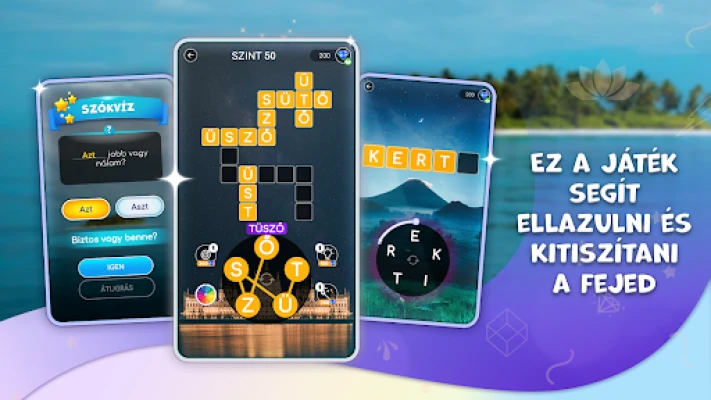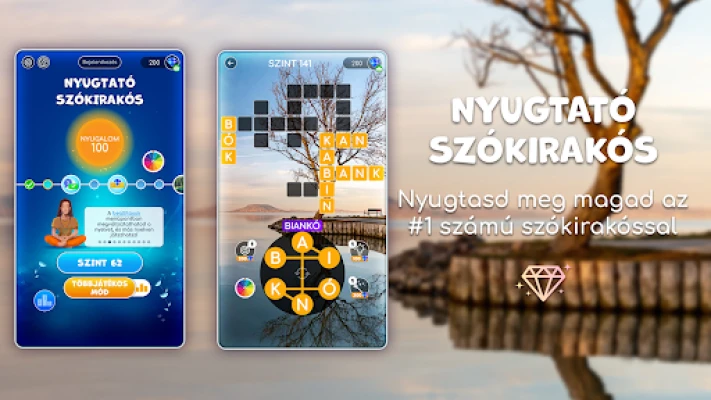 Készülj fel több mint 5000 egyedi feladványra, amelyek fokozatosan nehezednek, garantálva a folyamatos kihívást. Szakértők által összeállított, gazdag szótárkészlet biztosítja, hogy minden szó meglepetést és gondolkodnivalót tartogasson. Ha mégis elakadnál, a segítő tippek mindig rendelkezésedre állnak, hogy átlendítsenek a nehezebb részeken. Fedezz fel rejtett szavakat, amelyek újabb és újabb izgalmas világokat nyitnak meg előtted, mindezt nyugtató hanghatások és animációk kíséretében, amelyek elrepítenek a világ legcsodálatosabb tájaira, a békés és gyönyörű helyekre.