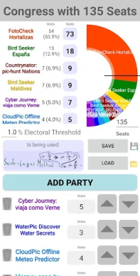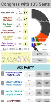 A politikai dinamikák és parlamenti struktúrák vizualizálásának élvonalában a Smart Sturnus egyedülálló módon kínál betekintést a képviselőházak működésébe. Ez az innovatív alkalmazás precízen rendezi a pártok listáját az elnyert mandátumok alapján, miközben a kongresszus vizuális elrendezése ideológiai skálán jelenik meg. Ezt a skálát a felhasználók finomhangolhatják a pártok létrehozásakor, így testreszabott és realisztikus ábrázolást biztosítva. Egy jól látható központi vonal is segíti a tájékozódást, amely azonnal megmutatja az abszolút többség eléréséhez szükséges küszöböt, garantálva a tiszta és érthető áttekintést.