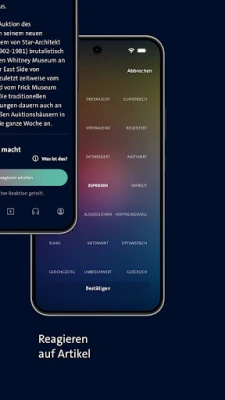 Lépjen be a tagesschau interaktív világába, ahol minden cikkhez kifejezheti érzelmeit, és azonnal láthatja, más felhasználók hogyan reagáltak. Ezáltal egyedi hangulatbarométerek jönnek létre az egyes témákhoz. A navigációs sáv videó ikonja mögött a tagesschau közösségi média szerkesztőségének legjavát találja, emellett élő közvetítéseket és korábbi adásokat tekinthet meg (beleértve a jelnyelvvel ellátott tagesschau-t, tagesthemen-t, tagesschau egyszerű nyelven és tagesschau24-et). A gyors tájékozódáshoz útközben ideális a „tagesschau 100 másodpercben" formátum. A fejhallgató ikonnal a tagesschau szerkesztőség minden audio tartalmához hozzáférhet, legyen szó aktuális témákat tartalmazó lejátszási listáról vagy podcast kínálatról. Értesüljön elsőként a fontos eseményekről az opcionális push értesítések révén, melyek azonnali eilmeldung-okat, prémium tartalmi figyelmeztetéseket, és akár személyre szabott értesítéseket is küldhetnek.