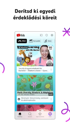 Engedje, hogy gyermekei biztonságos és ösztönző környezetben merüljenek el a videók világában! A YouTube Kids egy gondosan kialakított platform, ahol a kicsik és a nagyobbak egyaránt felfedezhetik a számukra leginkább megfelelő, szórakoztató és fejlesztő tartalmakat. Az egyszerű kezelőfelületnek köszönhetően a gyerekek önállóan navigálhatnak, miközben Ön nyugodt lehet, tudva, hogy minőségi és megbízható videók várják őket. Ez az alkalmazás arra lett tervezve, hogy a képzelet szárnyaljon, az érdeklődés elmélyedjen, és minden gyermek megtalálja a saját tempójában a fejlődés útját.